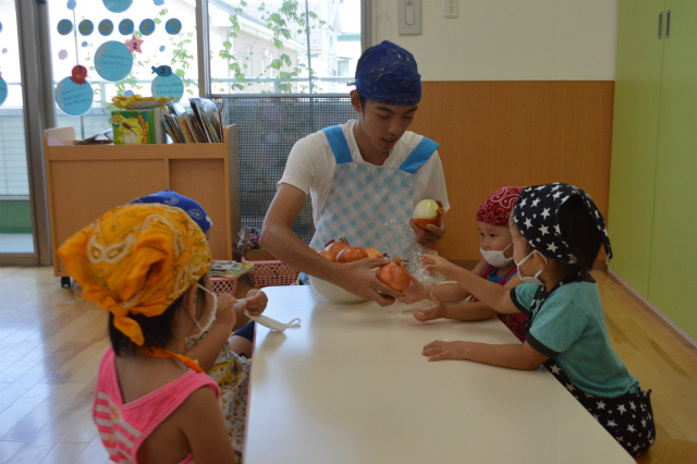 ほし組はたまねぎの皮をむいたり、ジャガイモを洗ったりととても興味津々(^○^)