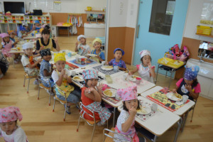 草加にじいろ保育園は完全自園調理給食、園庭開放と子育て講座で地域交流、看護師常駐の体調不良児対応保育園です。