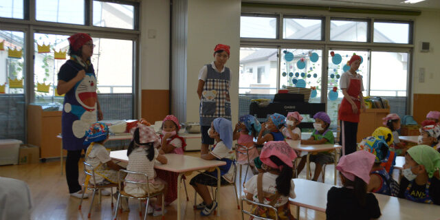 たいよう組は米を研いだり、包丁を使っ野菜を切ったりしました!