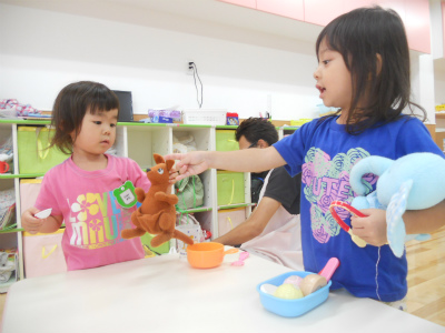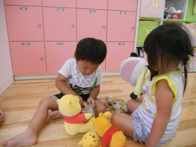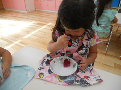 赤ちゃんに見立ててご飯をあげる姿はお兄さん、お姉さんでした♪