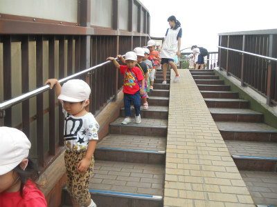 ふれあい公園に行くためにはこの歩道橋を渡らなければなりませんが、めろん組のお友達はすいすいと元気よくわたっていました!!