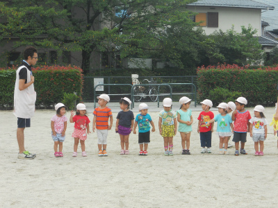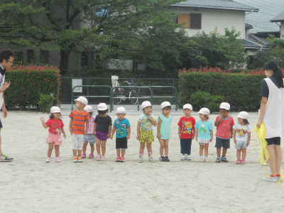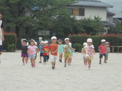 お名前呼びも元気よく返事をし、「よーい、ピッ!!」の笛の合図で勢いよく飛び出して走っていきました☆