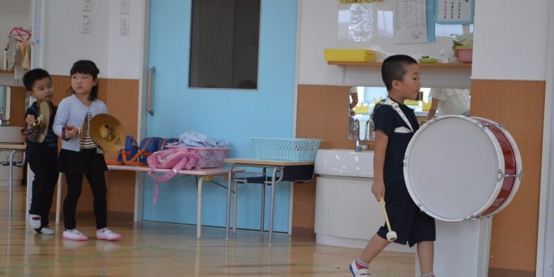 幼稚部のお友達は午後に運動会で行うマーチングの練習をしました。