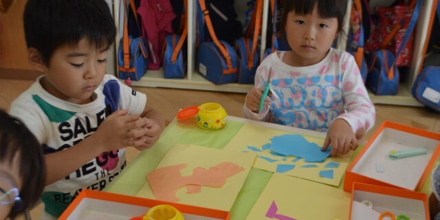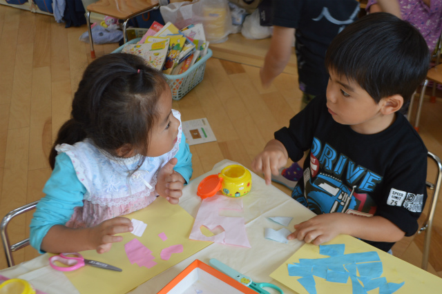 同じグループの子と一緒に話しながら作るお友達もいました(*^_^*)