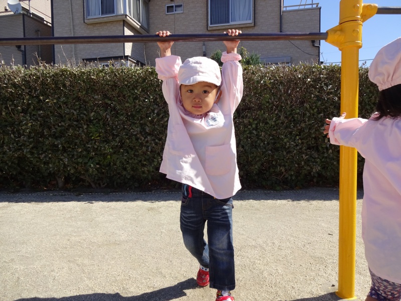公園では鉄棒にぶら下がったり、