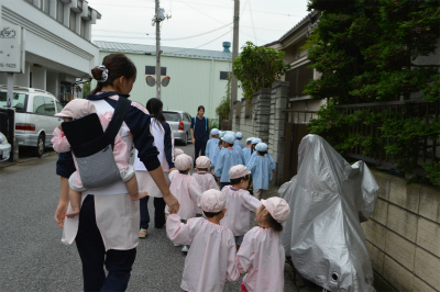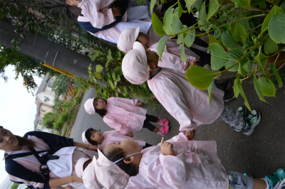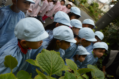 道の途中で大きなあおむしを発見!!幼稚部のお友達も保育部のお友達も興味津々(^^)/