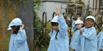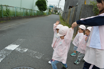 幼稚部のお姉さん・お兄さんは自分で道路を渡るときに手を挙げて渡っています、さすがですね☆