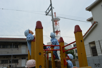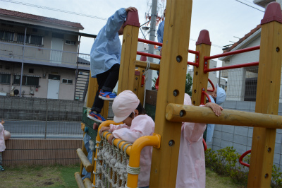 みんなアスレチックが大好きで幼稚部のお友達は高いところまで登っていきます(^^)/