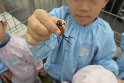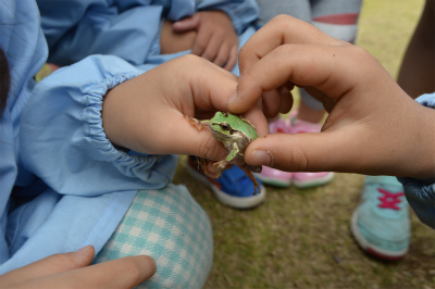 今日はコオロギやカエルとたくさんの生き物が保育園に遊びに来てくれました☆