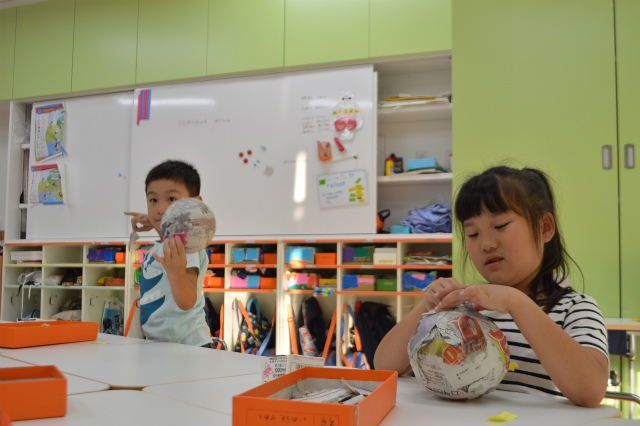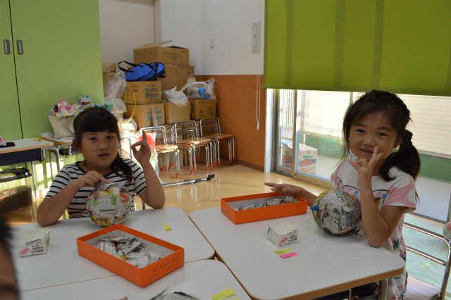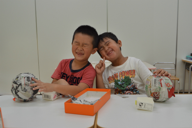 風船に新聞紙を張って・・・