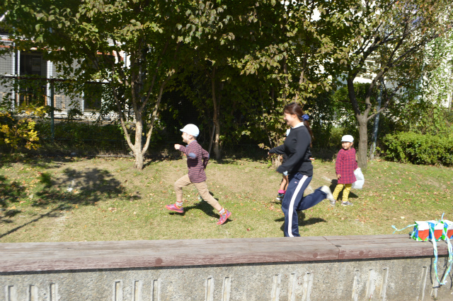 そら・たいよう組は保育者と鬼ごっこをしたり、