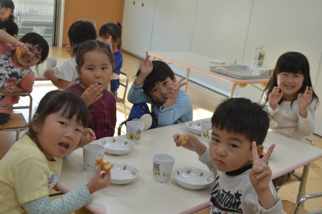口の周りに砂糖をたくさんつけながら美味しそうに頬張る様子が