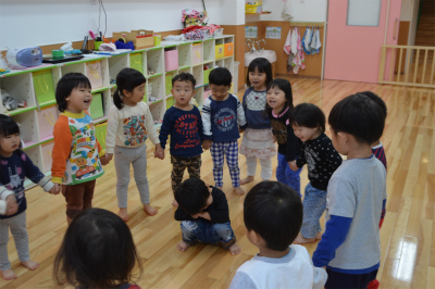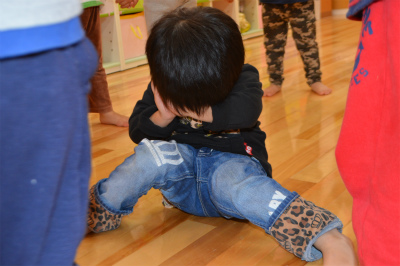 洗濯ごっこの次は「むっくりくまさん」をしました。