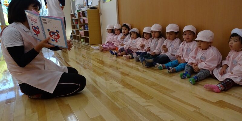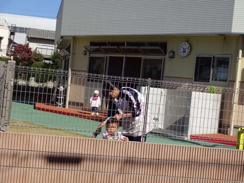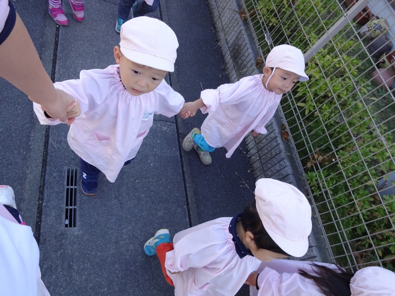八幡コミセンの広場までは全員で手を繋いでいきました。