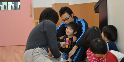 「何かなー。」「リンゴの赤ちゃんじゃないかな?」とかわいい会話をしていました(^◇^)