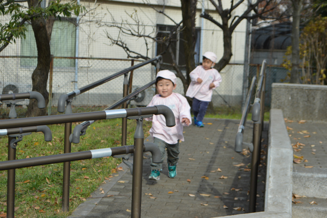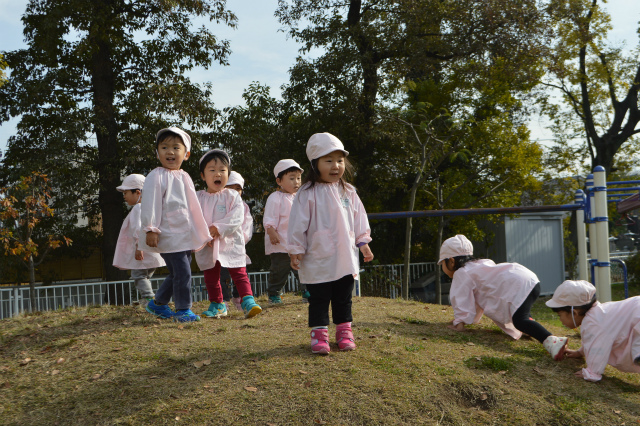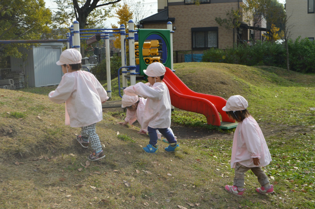 下にいた子どもたちもお友達の声を聞いて「よいしょよいしょ」と