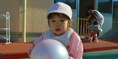 もも組のお友達は先生にボールを「どうぞ」と渡してくれました!