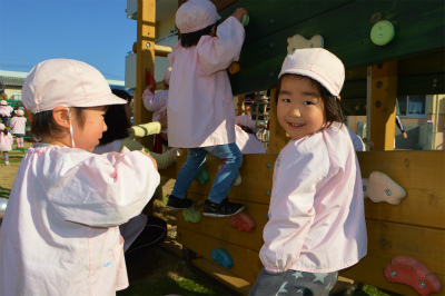 ロッククライミングを登ると「せんせーい、見て―!!」と呼んでいました。
