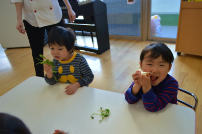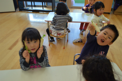 1月72016にじいろブログ 今日はおやつの時間に七草について 給食の先生がお話をしてくれました。 実際に七草を触ってみたり匂いをかいでみたりしました。 「みてー!!」と見せてくれました♪ おやつでは七草粥が出ました。 みんな嬉しそうに食べていました☆ おいしかったね(^▽^)♪ Post navigationPreviousPrevious post:1月6日(水)NextNext post:1月8日(金)