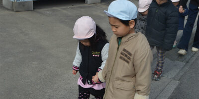 保育部のお友達は、幼稚部のお兄さん、お姉さんと手を繋いでいきました。