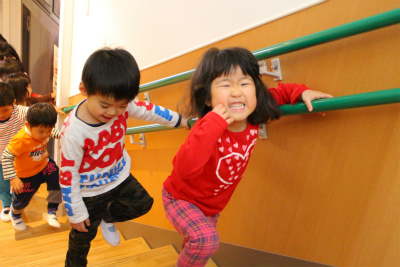 自分で上履きをはいてよいしょ、よいしょと階段をあがりました!!