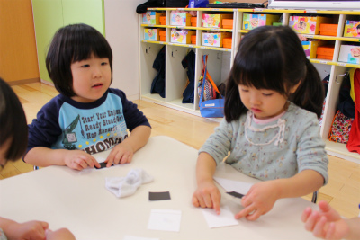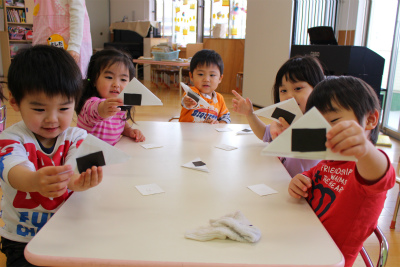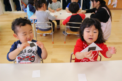 「こうやって折るの?」と上手にぱったんぱったんとしていました(*^_^*)