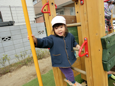 「せんせー、こんなのもできるようになったよー」と登っていたところから決めポーズをしてくれました☆