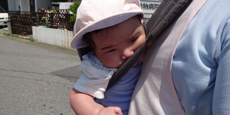 おんぶでの散歩が心地よいのかうとうとしています(-_-)zzz
