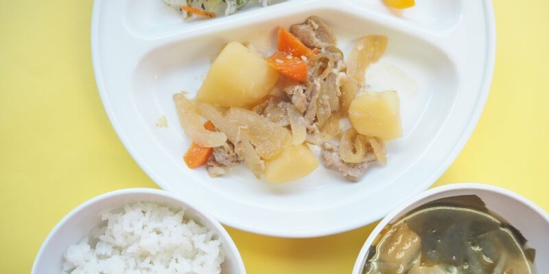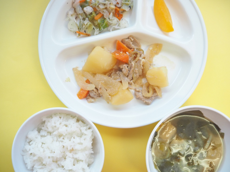 6月22016にじいろ給食ブログ~今日の給食~ ・肉じゃが ・キャベツと人参のゆかりあえ ・ごはん ・わかめと油揚げのみそ汁 ・もも ~今日のおやつ~ ・牛乳 ・ジャムサンド Post navigationPreviousPrevious post:6月2日(木)NextNext post:6月3日(金)