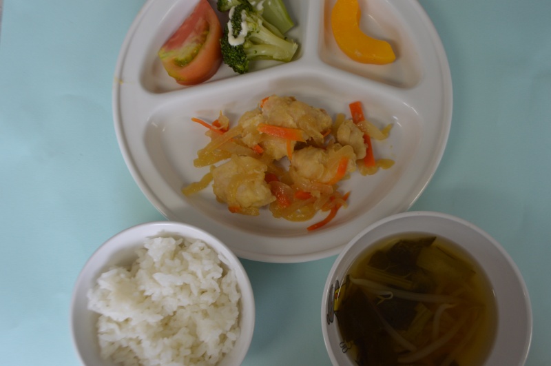 6月142016にじいろ給食ブログ~今日の給食~ ・チキン南蛮漬け ・冷やしトマト ・ボイルブロッコリー ・もやしと小松菜のみそ汁 ・もも ~今日の給食~ ・牛乳 ・あじさいゼリー ・鉄ウエハース Post navigationPreviousPrevious post:6月14日(火)NextNext post:6月15日(水)
