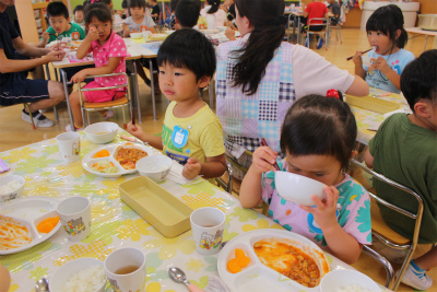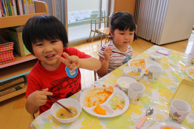 給食前は、いい匂いがしてきてみんなお腹ペコペコ。