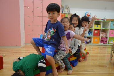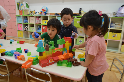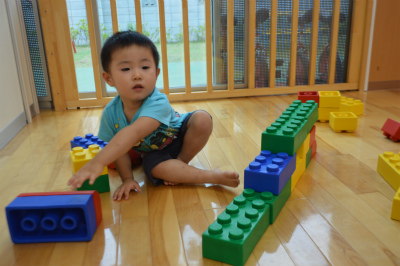 大型ブロックやアンパンマンブロックを使った遊びでは