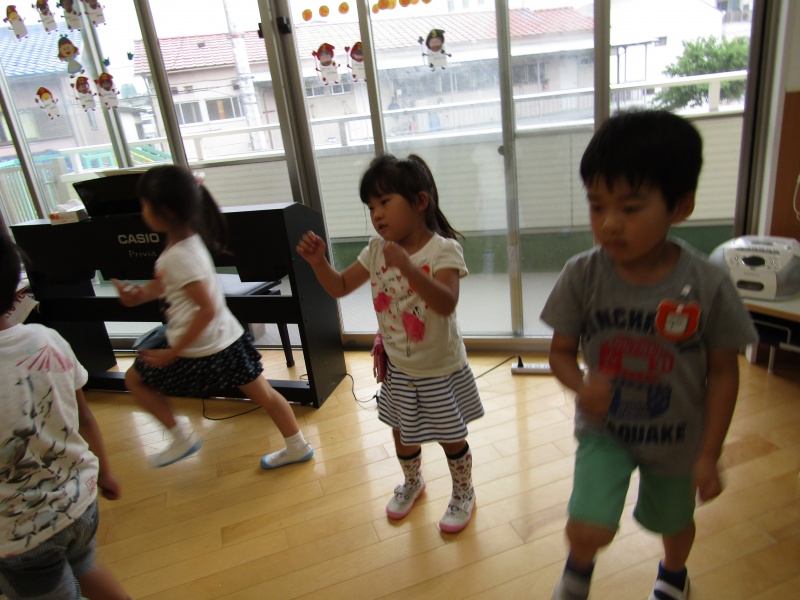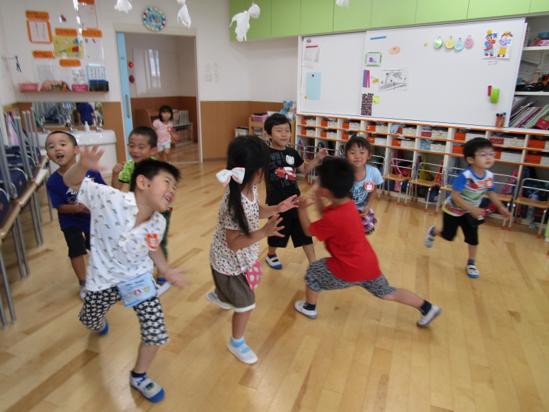 マーチングの練習の後は、おおかみさんと言うゲームをして遊びました。