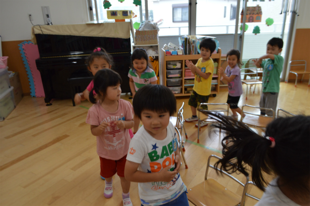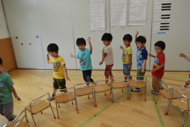 昨年の発表会の音楽をかけてのいす取りゲームは