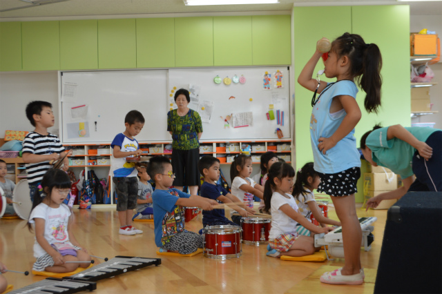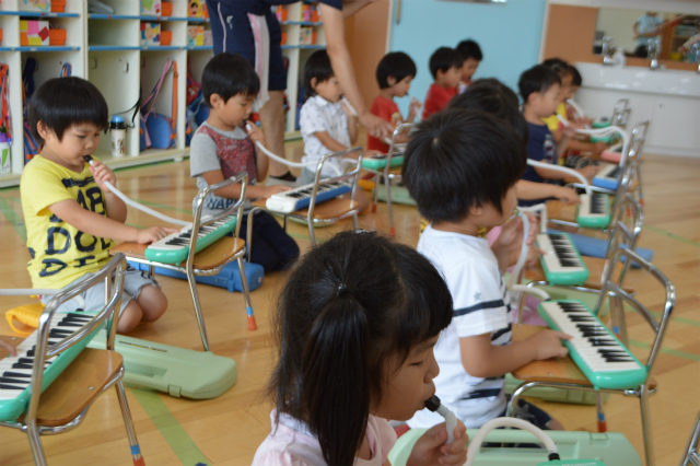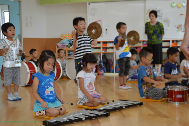 7月72016にじいろブログ今日はたいよう組の様子です。 わくわくタイムの時間を使ってマーチングの練習をしました(^○^) 音を聞きながら自分のパートを一生懸命演奏します! 指揮のお友達も背筋が伸びていてかっこいいですね☆ とても真剣な表情で行っていました。 そら組のお友達はたいよう組の演奏に合わせて 鍵盤ハーモニカを吹きました♪ たいよう組に負けないように、 大きな音で吹く姿がありました(*^。^*) Post navigationPreviousPrevious post:7月6日(水)NextNext post:7月8日(金)