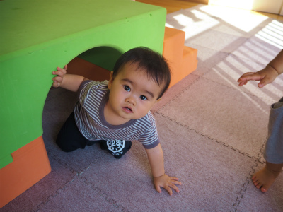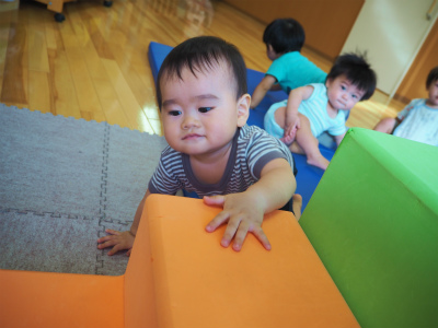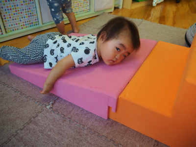8月12016にじいろブログ 今日はもも組の様子です。 午後おやつを食べた後は、巧技台で遊びました! 子どもたちは大好きで、巧技台が出てくると「きゃっきゃ」と喜んでいます。 一生懸命、手足を使ってのぼります。 トンネルから顔をのぞかせて、ばあ(^O^)! 坂にごろーんとして休憩タイム~(p_-)☆ 今日もたくさん遊んだ、もも組さんです! Post navigationPreviousPrevious post:7月27日(水)NextNext post:8月2日(火)