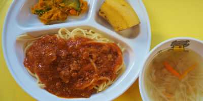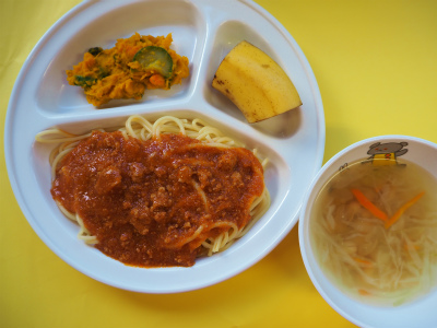 9月62016にじいろ給食ブログ~ 今日の給食 ~ ・ミートスパゲティー ・かぼちゃのサラダ ・豆と野菜のスープ ・バナナ ~ 今日のおやつ ~ ・牛乳 ・わかめおにぎり Post navigationPreviousPrevious post:9月3日(土)NextNext post:9月7日(水)