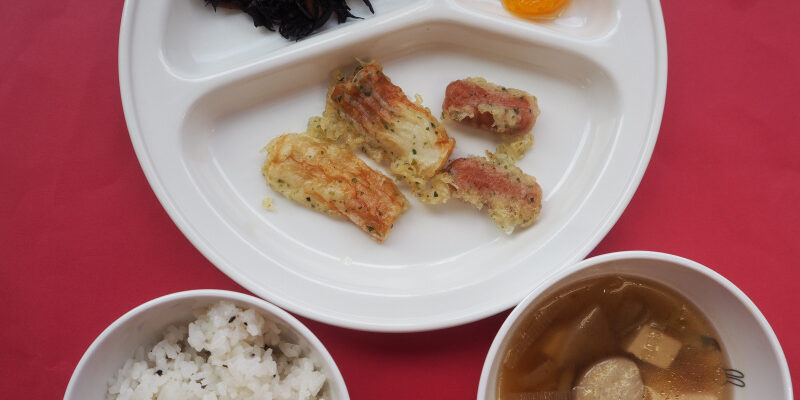 9月272016にじいろ給食ブログ~ 今日の給食 ~ ・ちくわとウインナーの磯辺揚げ ・ひじき煮 ・ごはん ・けんちん汁 ・みかん ~ 今日のおやつ ~ ・牛乳 ・パンケーキ Post navigationPreviousPrevious post:9月27日(火)NextNext post:9月27日(火)