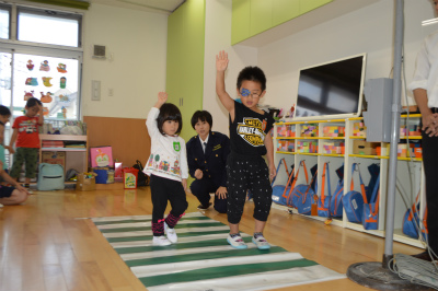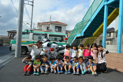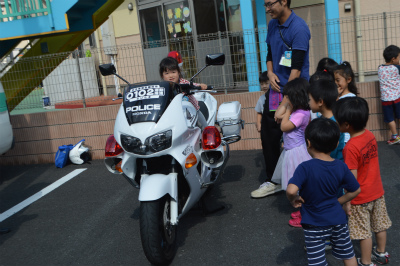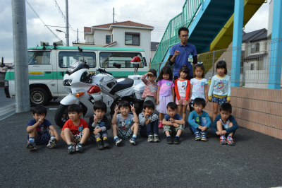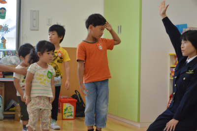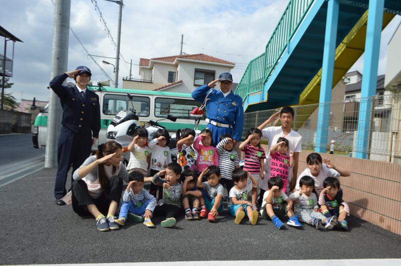 保育園には市役所の方とかっこいい警察官が来てくれてお話をしてくれました。