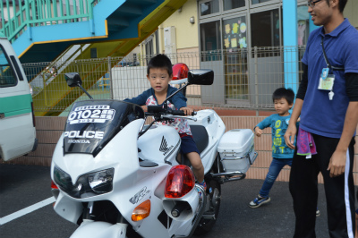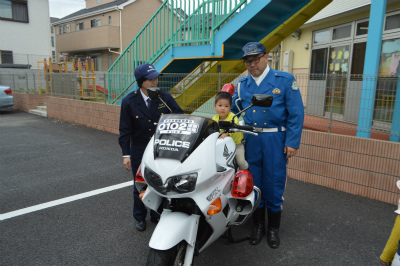 そして今日はなんと白バイで来てくれたお巡りさん。
