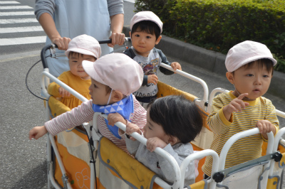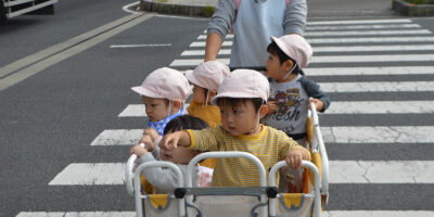もも組さんは、園の周りをお散歩です。