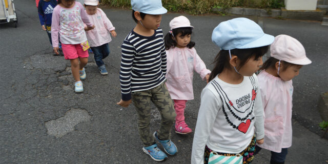 たいよう組さんはめろん組さんと手をつないで歩きます!