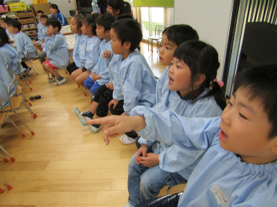 興味津々です。みんなよく聞いて答えています。