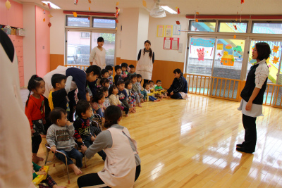 今日は保育部合同で発表会に向けての練習をしました。 保育部で集まって練習するのは今日が初めてだったので 周りを見回したり、じっと座っていたりと少し緊張しているようでした。 先生が前に立つと、みんなが上手にお話を聞いていま…