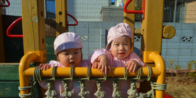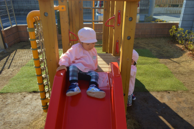 園庭では石遊びや滑り台がもも組さんのお気に入りです。