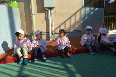 めろん組さんが後から園庭に出てくると一緒に座って先生のお話を聞いていましたよ。