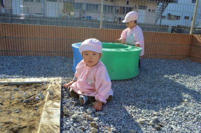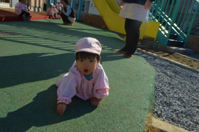 まだハイハイのお友達もお外ではいつもよりたくさん動き回ります。