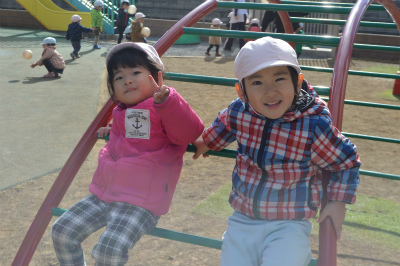 たまに幼稚部のお兄さん、お姉さんの遊び方を真似する姿もあります。