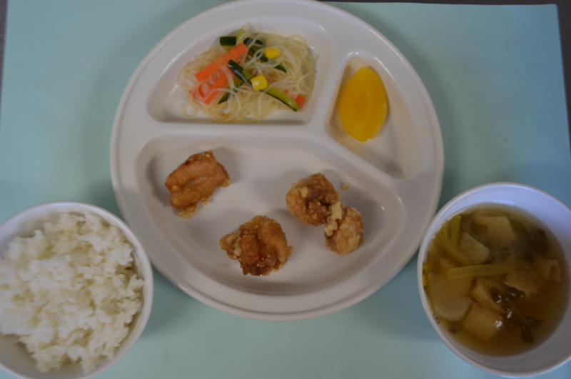 2月132017にじいろ給食ブログ~ 今日の給食 ~ ・鶏のから揚げ ・春雨サラダ ・ごはん ・かぶと油揚げのみそ汁 ・もも ~ 今日のおやつ ~ ・牛乳 ・かぼちゃの茶巾 Post navigationPreviousPrevious post:2月13日(月)NextNext post:2月14日(火)