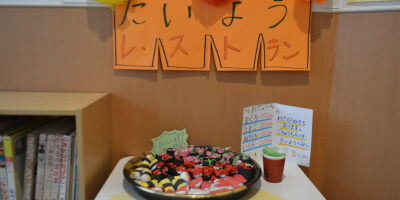 今、たいよう組では遊びの中で「レストラン」を開いています。